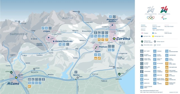 据介绍,米兰冬奥会设置8个大项、16个分项和176个小项。比赛分别安排在米兰、瓦尔泰利纳、费耶美山谷和科尔蒂纳等四大赛区、八个举办地。赛区之间通勤十分不便,平均相隔250至400公里,单程平均耗时5小时以上,且多为山路。