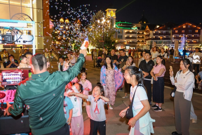 在崇礼,这里用清凉的温度和丰富的休闲“圈粉”更多人。夜幕降临,富龙四季小镇内灯火通明、人头攒动。这里是崇礼区重点建设打造的全时、全季、全家庭度假目的地。远处山上,年轻人骑着山地自行车疾驰而下。近处湖面,一场夜间音乐喷泉秀正在上演,绚丽的灯光、舞动的水花,引来人们驻足围观。
