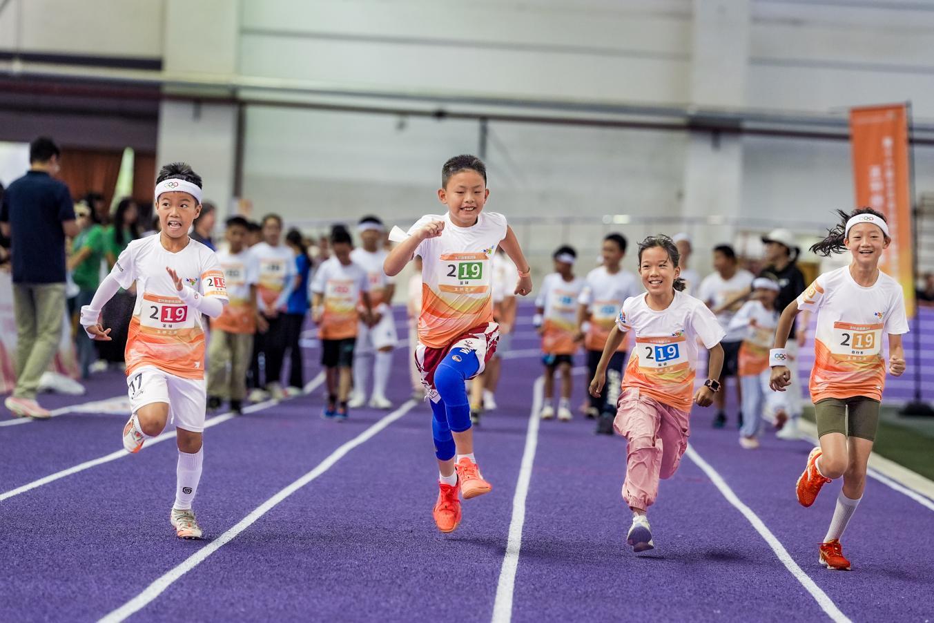 五环勋章挑战赛不仅是体力与技巧的较量,更是团结与意志的展现。本届五环勋章挑战赛设置U12(10-12岁)、U9(6-9岁)两个组别,项目包括田径400米竞速、冰上绕行障碍技巧、篮球技巧(即运球过杆+传球入筐+投篮)、自行车绕桩技巧和足球技巧(折返跑+传接球+带球过障碍+射门)。以5名队员组队(男女不限)的方式参赛,每名队员须完成本队5个项目中指定的1项,以全队累计完赛时间计本队成绩。