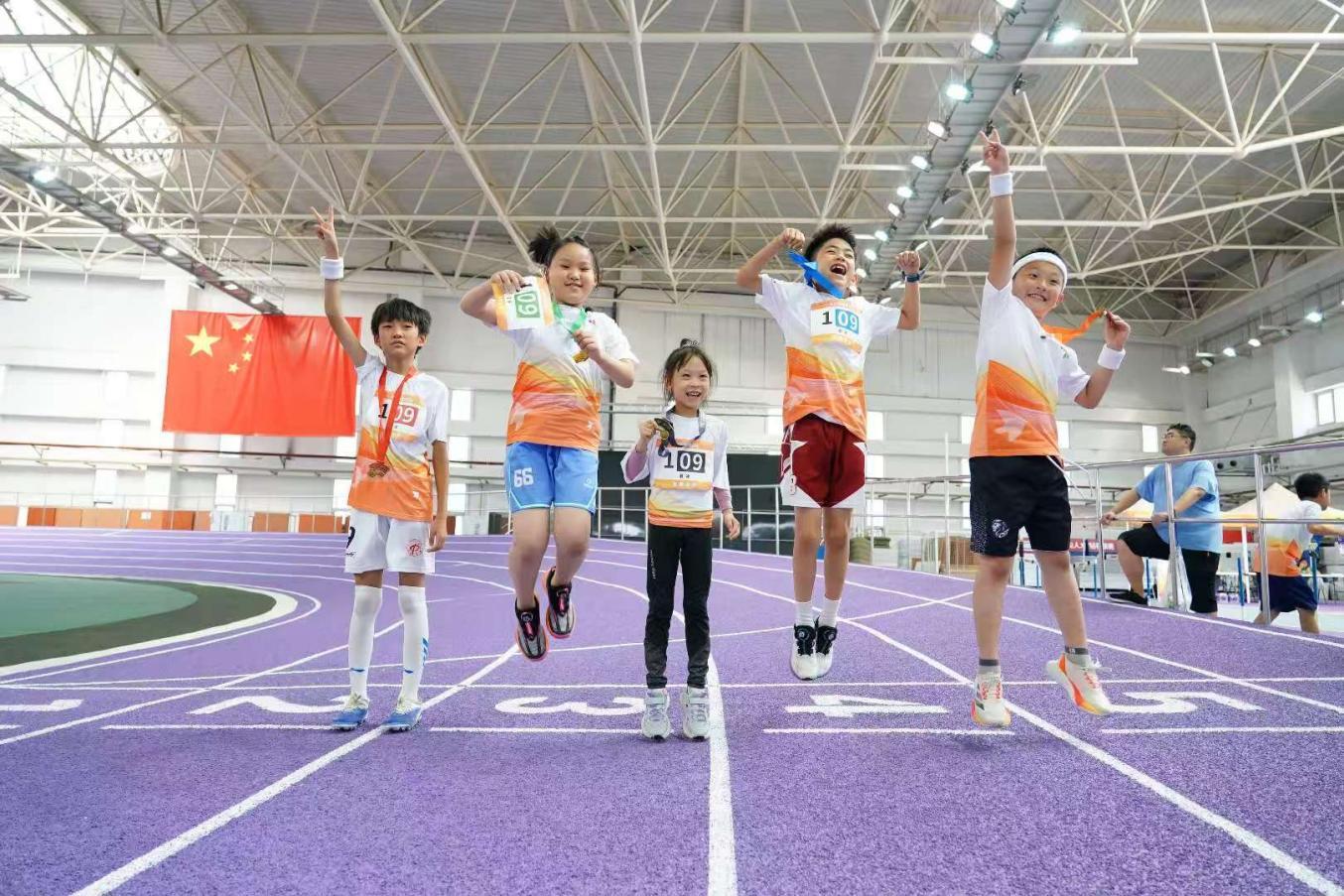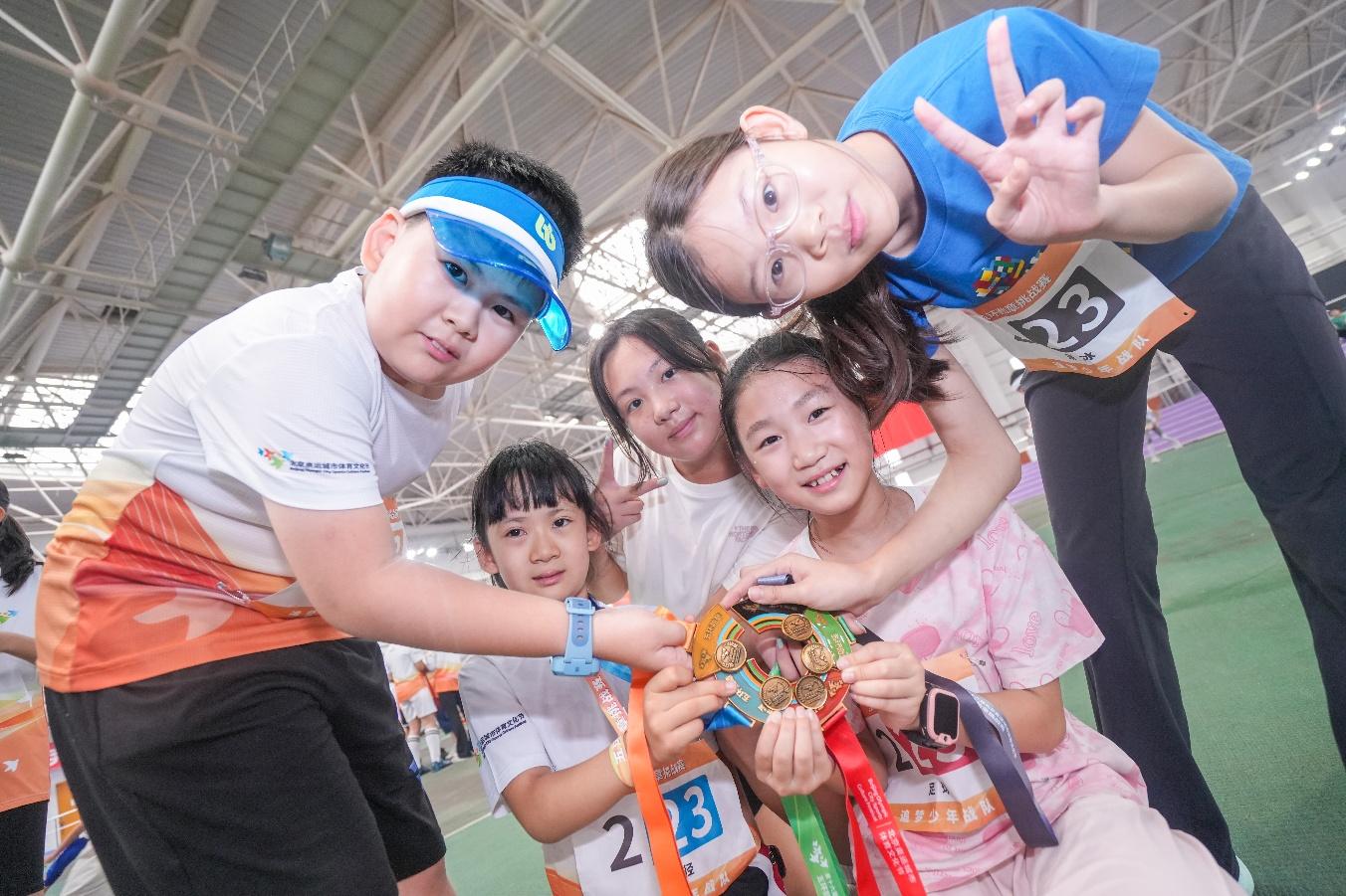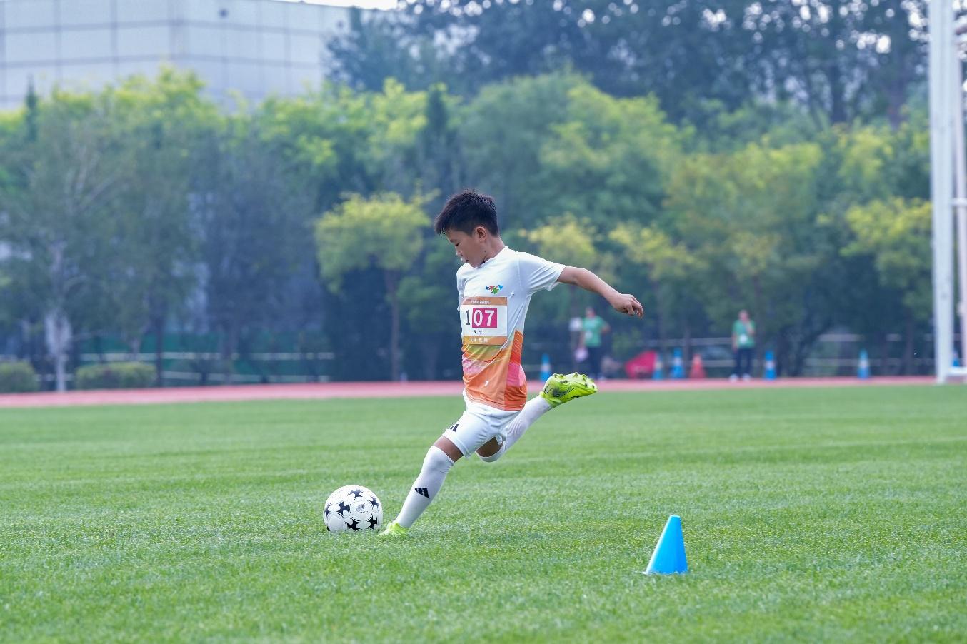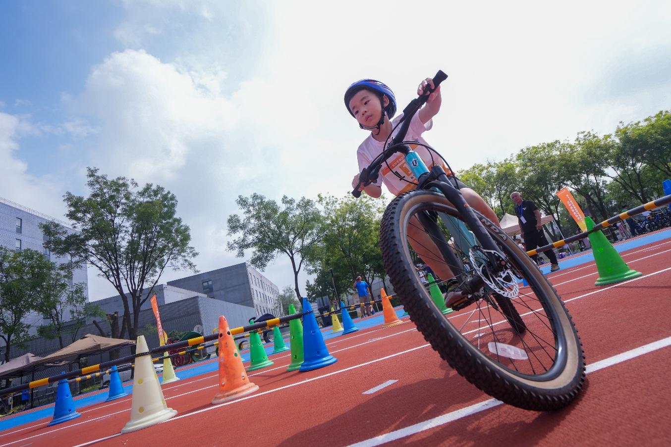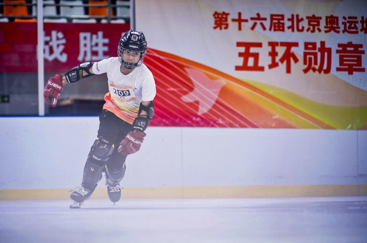 比赛当天,现场活力绽放,热情澎湃。小队员们在家长的陪同下早早来到比赛场馆,认真进行赛前慢跑、拉伸等热身运动。上午9时,随着一声哨响,U12组率先开赛。队员们在田径赛场上奋力冲刺,在冰场障碍间闪转腾挪,在篮球场上运球、投篮一气呵成,在自行车比赛区“丝滑”绕桩骑行,在足球场盘带、射门英姿飒爽尽展豪情。随后进行的是U9组比赛,小队员们在同样的赛场上不畏困难,挑战自我,把拼搏与激情映照进象征光荣与梦想的“五环勋章”,展现了“少年强”的风采。