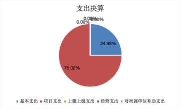 2024年度本年支出合计16202.96万元,比上年减少9390.44万元,下降36.69%,其中:基本支出4047.47万元,占支出合计的24.98%;项目支出12155.49万元,占支出合计的75.02%;上缴上级支出0万元,占支出合计的0%;经营支出0万元,占支出合计的0%;对附属单位补助支出0万元,占支出合计的0%。