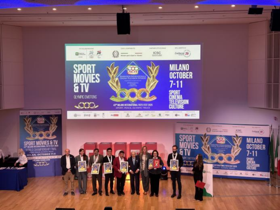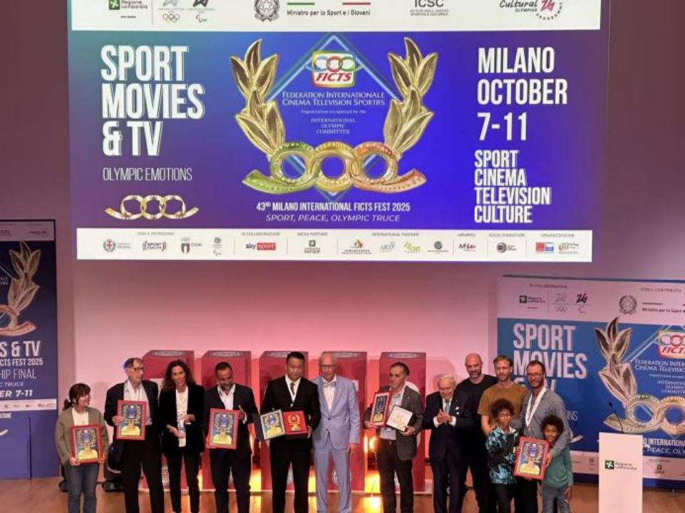 第43届米兰国际体育电影电视节总决赛于10月7日至11日在意大利米兰举行。10月11日晚,总决赛颁奖典礼在米兰伦巴第大区礼堂举行。今年,北京国际体育电影周(以下简称“体育电影周”)共选送了10部影片赴第43届米兰国际体育电影电视节全球总决赛的舞台进行角逐。最终,3部作品在激烈的国际比拼中脱颖而出。《潮·跃》和《破晓的跑道》分别获得纪录片-个人运动单元和体育与社会/体育与青年单元提名奖,《高原之羚——中国第一个藏族奥运冠军切阳什姐的逐梦之旅》荣获奥运会与残奥会精神-短片单元金花环奖。