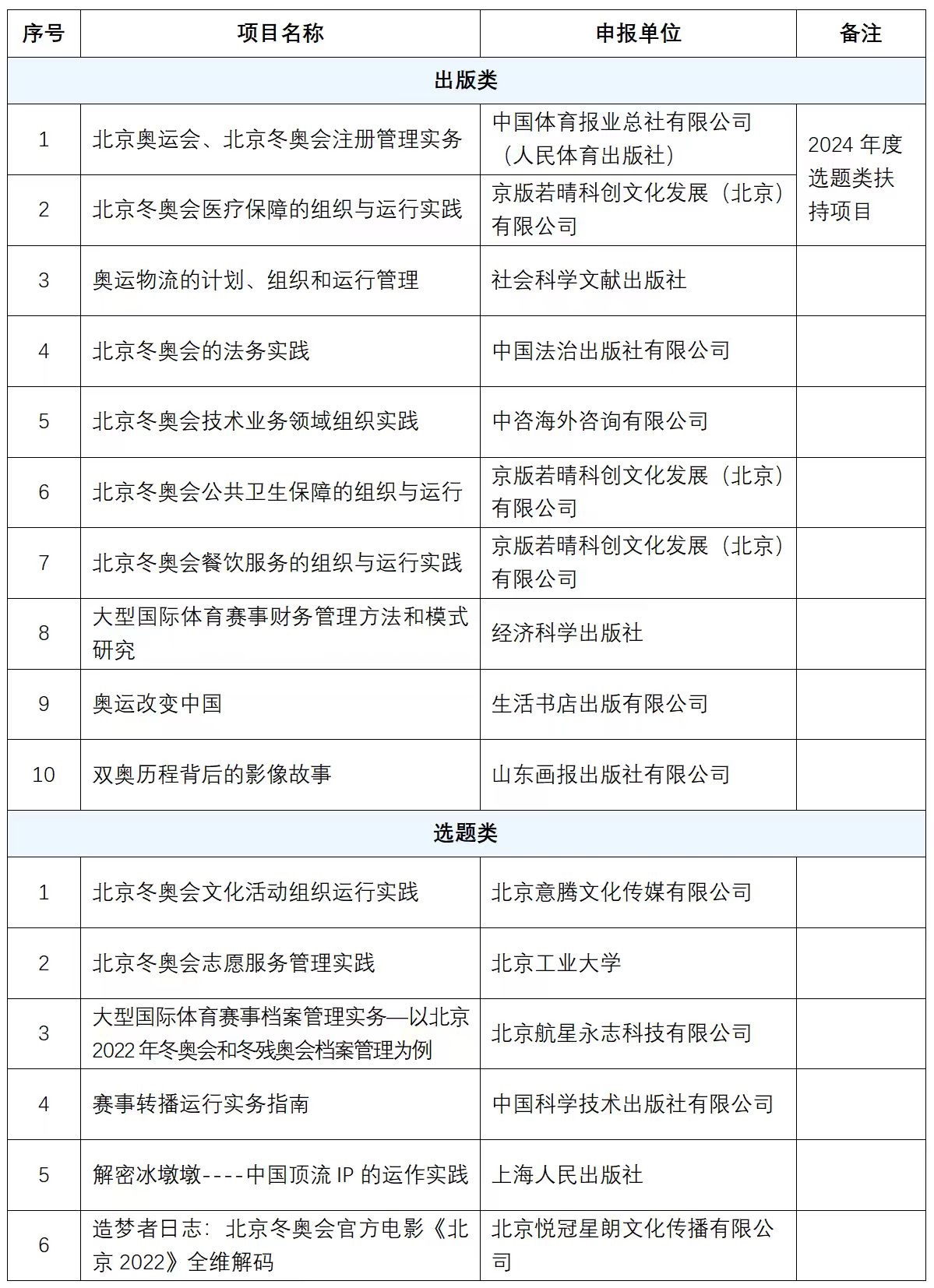 附件:2025年度“双奥遗产出版扶持计划”出版类和选题类扶持项目(公示)
